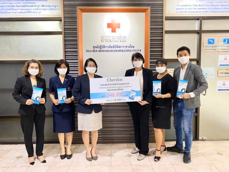 ผลกระทบจากการติดเชื้อไวรัสโควิด 19 โดยได้รับเกียรติจาก แพทย์หญิง ช.เขมศิริ คงรักเกียรติยศ รองผู้อำนวยการสำนักงาน ฯ เป็นผู้รับมอบเชอรีล่อน ได้นำ หน้ากากผ้าทอสุขภาพ จำนวน 12,000 ชิ้น มูลค่า 348,000 บาท มอบให้แก่ สำนักงานบรรเทาทุกข์และประชานามัยพิทักษ์ สภากาชาดไทย เพื่อช่วยเหลือประชาชนและผู้ได้รับ