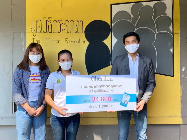 เชอรีล่อน เดินทางไป มูลนิธิกระจกเงา มอบ หน้ากากผ้าทอเพื่อสุขภาพ จำนวน 1,200 ชิ้น มูลค่ารวม 34,800 บาท เพื่อให้มูลนิธินำไปใส่กล่องยังชีพ ให้กับประชาชนที่เดือดร้อนในสถานการณ์โควิด19 โดยมี คุณวีราภรณ์ ประสพรัตนสุข หัวหน้าฝ่ายสื่อสารองค์กรและระดมทุน มูลนิธิกระจกเงา เป็นผู้รับมอบ