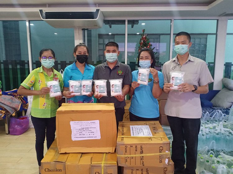 นายแพทย์วิรัช พันธ์พานิช รองเลขาธิการมูลนิธิขาเทียม ในสมเด็จพระศรีนครินทราบรมราชชนนี ให้เกียรติรับมอบหน้ากากผ้าทอจากเชอรีล่อนจำนวน 1,500 แพค 3,000 ชิ้น มูลค่ารวม 73,500 บาท ณ ที่ทำการมูลนิธิขาเทียมฯ จ.เชียงใหม่ เพื่อนำไปมอบให้แก่ผู้พิการที่เข้ามารับบริการทำขาเทียม รวมถึงเจ้าหน้าที่ของมูลนิธิฯ ที่อาจได้รับความเสี่ยงในช่วงสถานการณ์โควิดระบาด