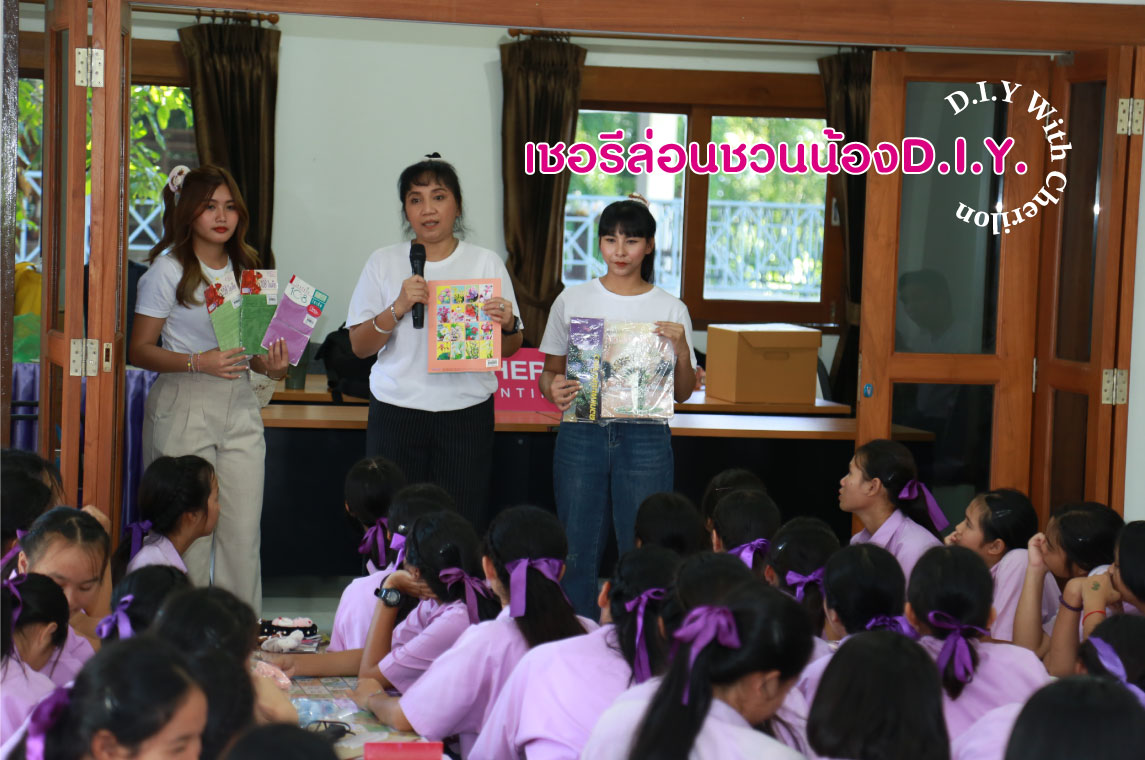 "ช่วงบ่ายชวนน้อง ๆ ประดิษฐ์ของใช้จากถุงน่อง ในกิจกรรม D.I.Y. With Cherilon เสริมสร้างจินตนาการสู่งานประดิษฐ์ ให้น้อง ๆ นำสิ่งของเหลือใช้ ใกล้ตัวมาทำให้เกิดประโยชน์ เช่น กิ๊บ ที่คาดผม ตุ๊กตา ดอกไม้ประดิษฐ์"