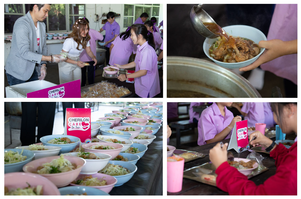 วันที่ 1 พ.ย. 2566 ฝ่ายผลิตภัณฑ์และการตลาดเชอรีล่อน บริษัท นิวซิตี้ (กรุงเทพฯ) จำกัด (มหาชน) ได้จัดเลี้ยงอาหารกลางวัน ในโครงการ “น้องอิ่มท้อง เชอรีล่อนอิ่มใจ” ณ โรงเรียนเฉลิมพระเกียรติ ๔๘ พรรษา ในพระราชูปถัมภ์สมเด็จพระเทพรัตนราชสุดาฯ สยามบรมราชกุมารี และจัดกิจกรรมคืนความสุขสร้างรอยยิ้มให้กับทางน้อง ๆ พร้อมมอบผลิตภัณฑ์จากเชอรีล่อน ที่มีความจำเป็นในการใช้ในชีวิตประจำวัน เช่น บรา กางเกงชั้นใน เสื้อบังทรง ถุงเท้า โดยมีนางสาวจุไรรัตน์ จันทราช ผู้จัดการโรงเรียน และนางสาว วราภรณ์ เนตรใหญ่ ผู้อำนวยการ ให้เกียรติต้อนรับ