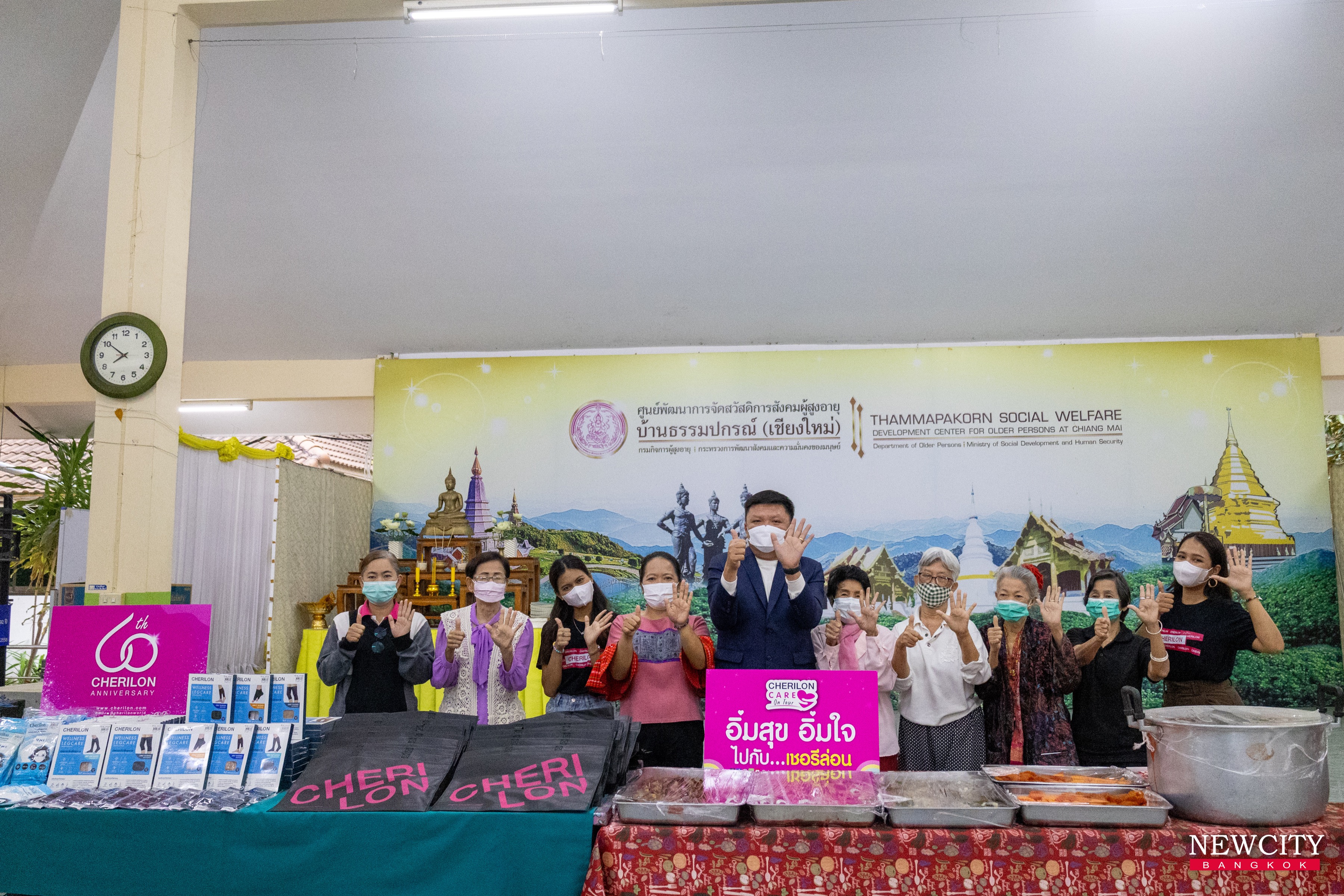 เมื่อเร็ว ๆ นี้ ฝ่ายการตลาด บริษัท นิวซิตี้ (กรุงเทพฯ) จำกัด (มหาชน) เดินทางไปยังจังหวัดเชียงใหม่ เนื่องในวาระครบรอบ 60 ปี ทางแบรนด์เชอรีล่อนร่วมแบ่งปันความสุขกับศูนย์พัฒนาการจัดสวัสดิการสังคมผู้สูงอายุบ้านธรรมปกรณ์ เชียงใหม่ ในโครงการ “อิ่มสุข อิ่มใจไปกับเชอรีล่อน” จัดเลี้ยงอาหารเช้า พร้อมมอบผลิตภัณฑ์จากแบรนด์เชอรีล่อนที่มีความจำเป็น และมีประโยชน์ต่อสุขภาพต่อผู้สูงอายุ เช่น หน้ากากอนามัย ถุงเท้า ถุงผ้า และปลอกกระชับต่าง ๆ ที่จะช่วยลดโอกาสการเกิดเส้นเลือดขอด บรรเทาอาการปวด เคล็ดขัดยอก จากการเดินหรือยืนนาน ๆ มูลค่ารวม 98,800 บาท
